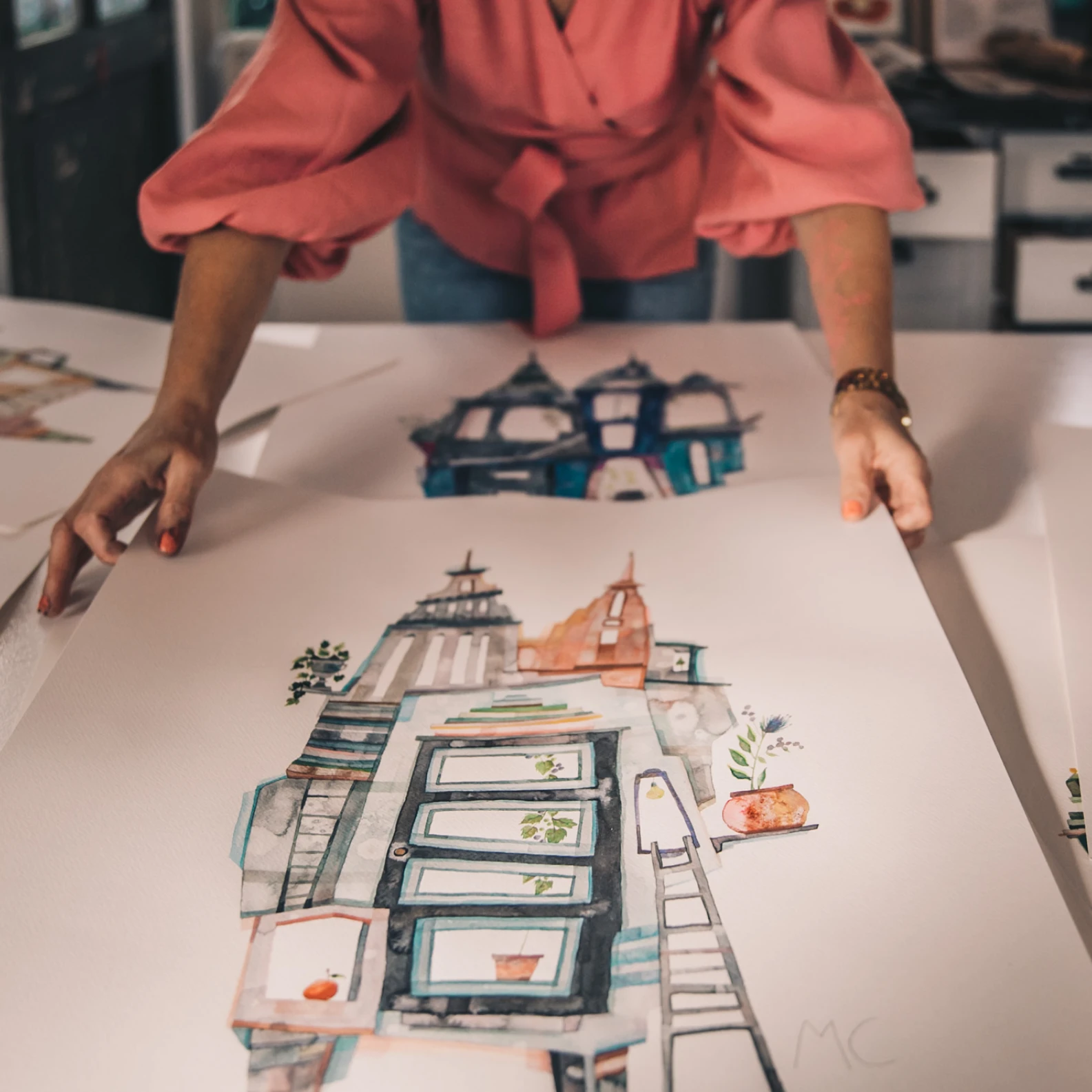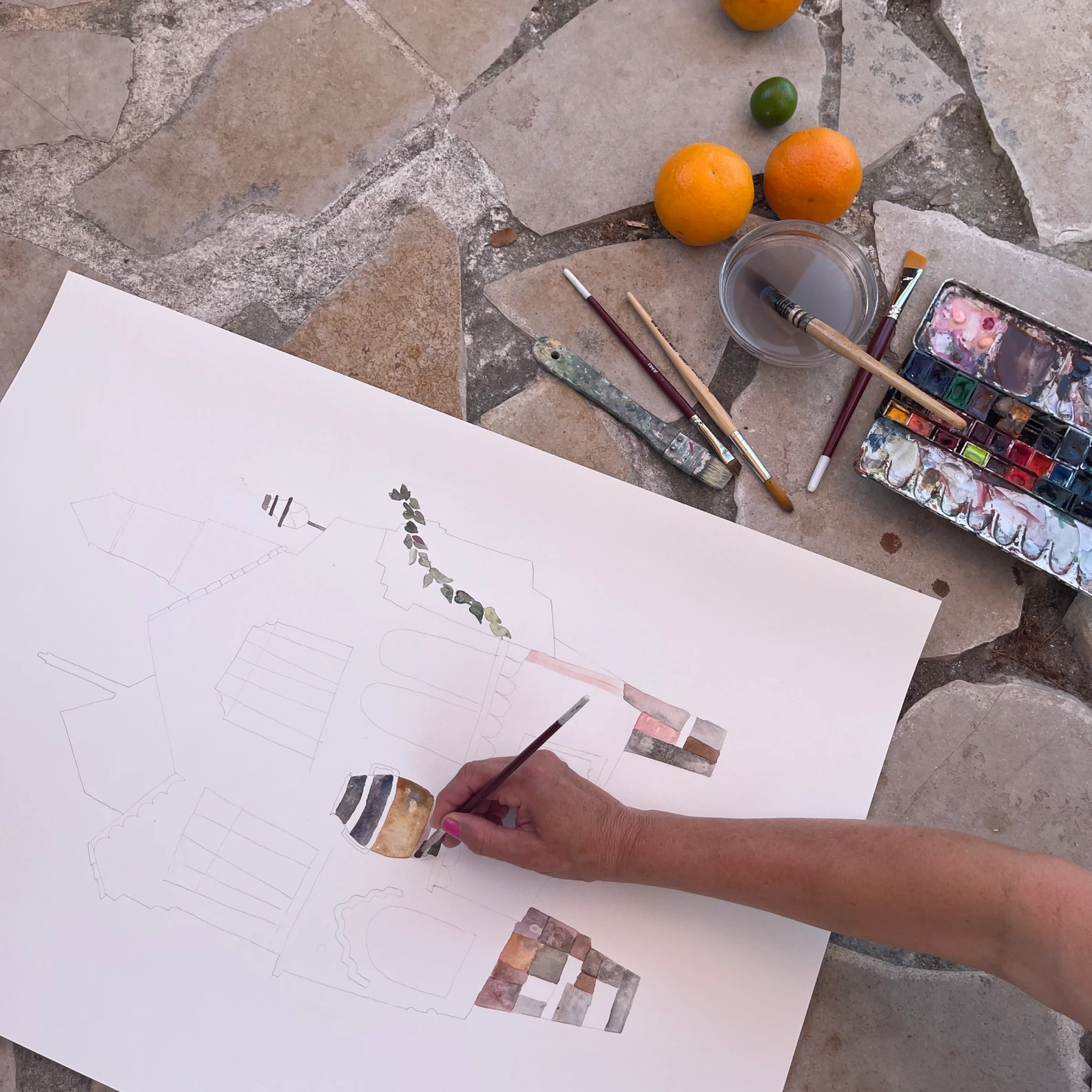 For Maria, painting aquarelle is often a relaxing and tranquil process. When she travels, Maria typically packs her colors and makes an effort to take time to paint wherever she is. The motifs often take on a slightly different quality, and the color combinations result in new blends, giving the artwork a fresh expression.