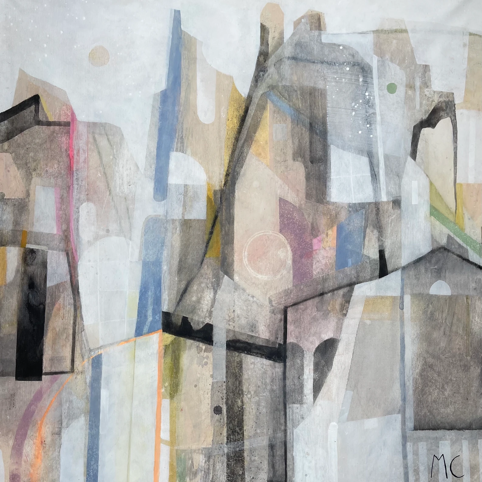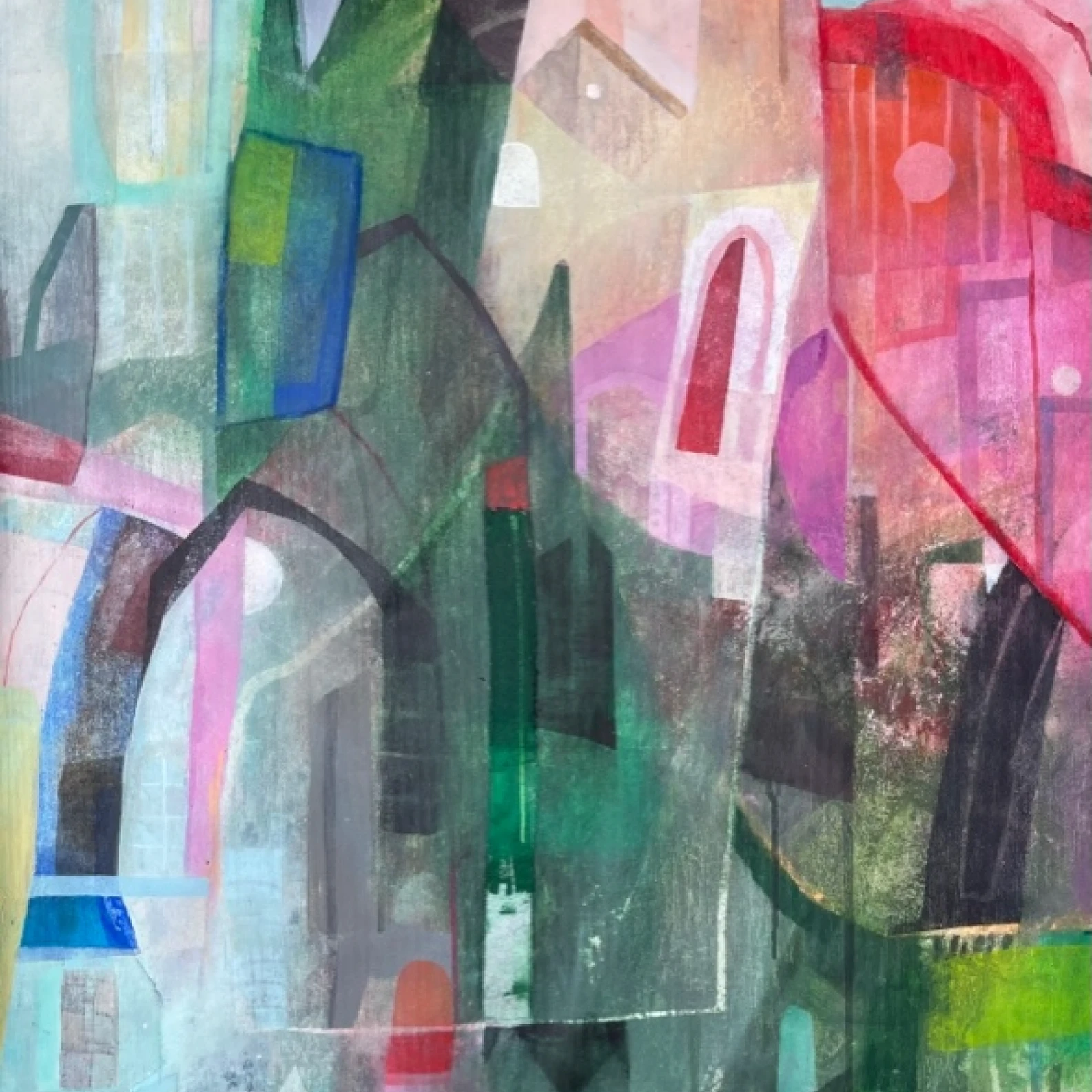 Semi-abstract acrylic paintings inspired by cities and buildings.